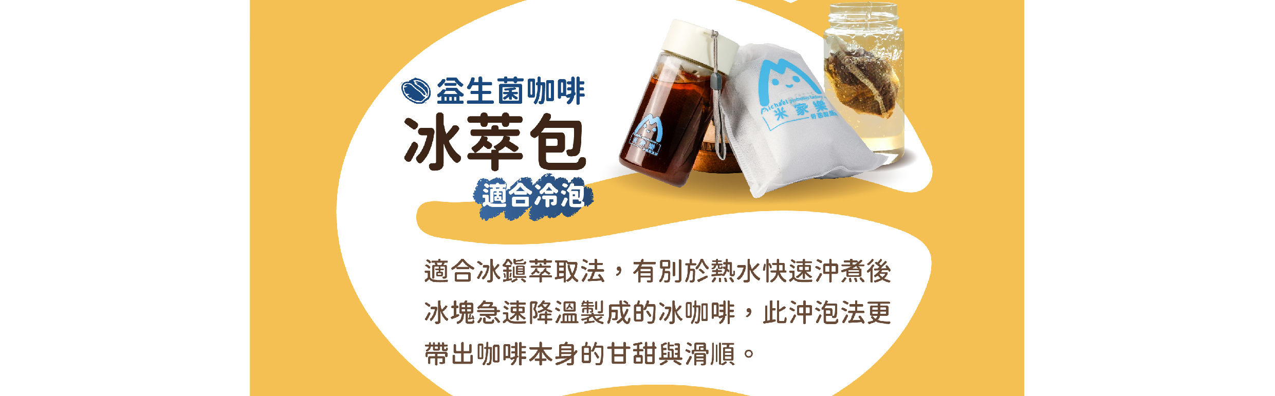 口感醇厚而典雅,有別於熱水快速沖煮後冰塊急速降溫製成的冰咖啡。此特殊調製烘焙的阿拉比卡豆蘊含著濃厚的巧克力風味調性,更帶出咖啡本身的甘甜與滑順。使用時建議晚上冰入冰箱,早晨即可享用好菌滿滿的冰釀益生菌咖啡!